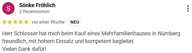 Ich habe im September 2025 ein Mietshaus in Nürnberg durch Herrn Schloßer verkauft.